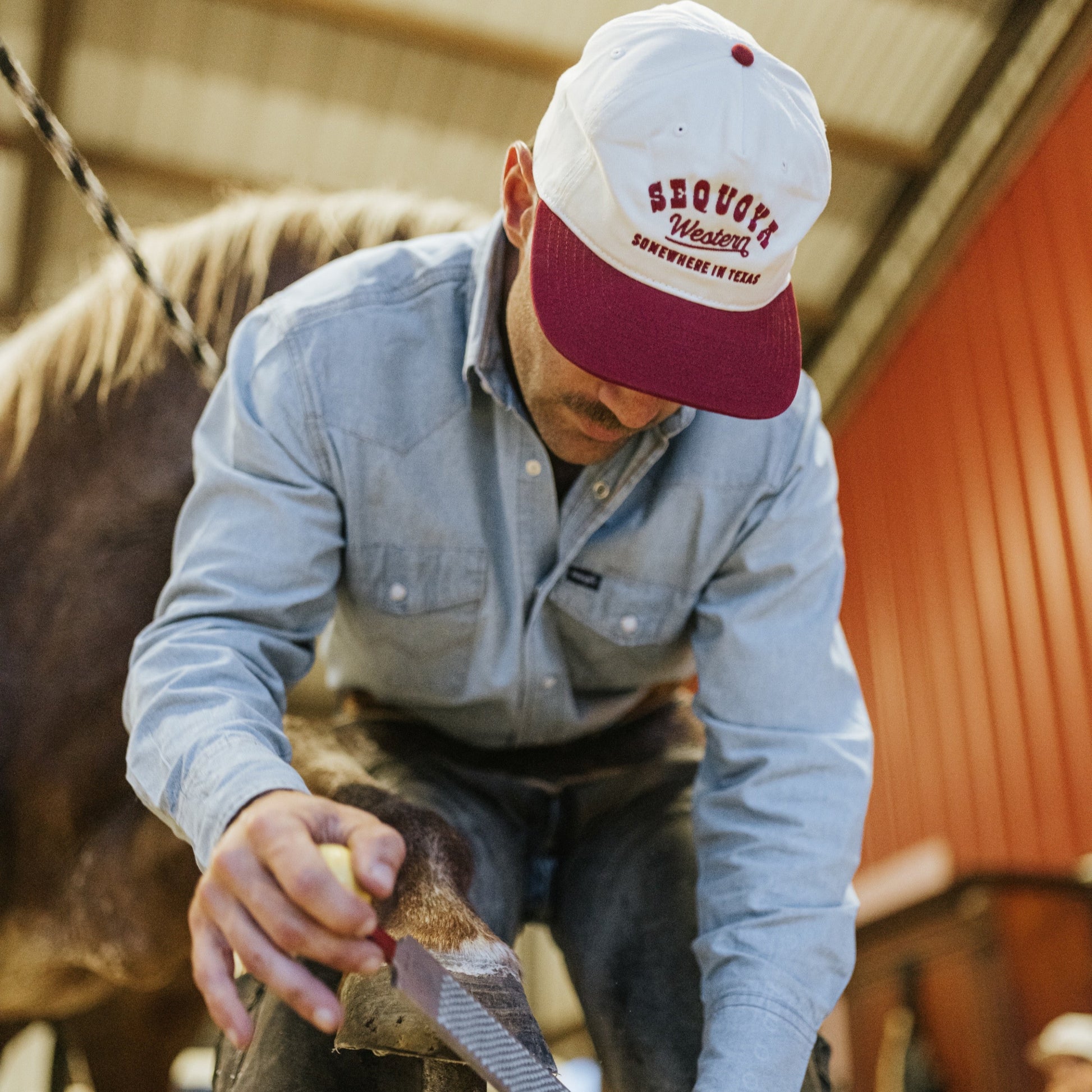 The kind of hat that rides shotgun more than it sits on a shelf. The Palo Duro’s made for dirt roads, town runs, and chasing a storm out past the grain elevators. Mid-profile cotton that breaks in like the jeans you keep patching instead of replacing. Somewhere in Texas, like you oughta be.